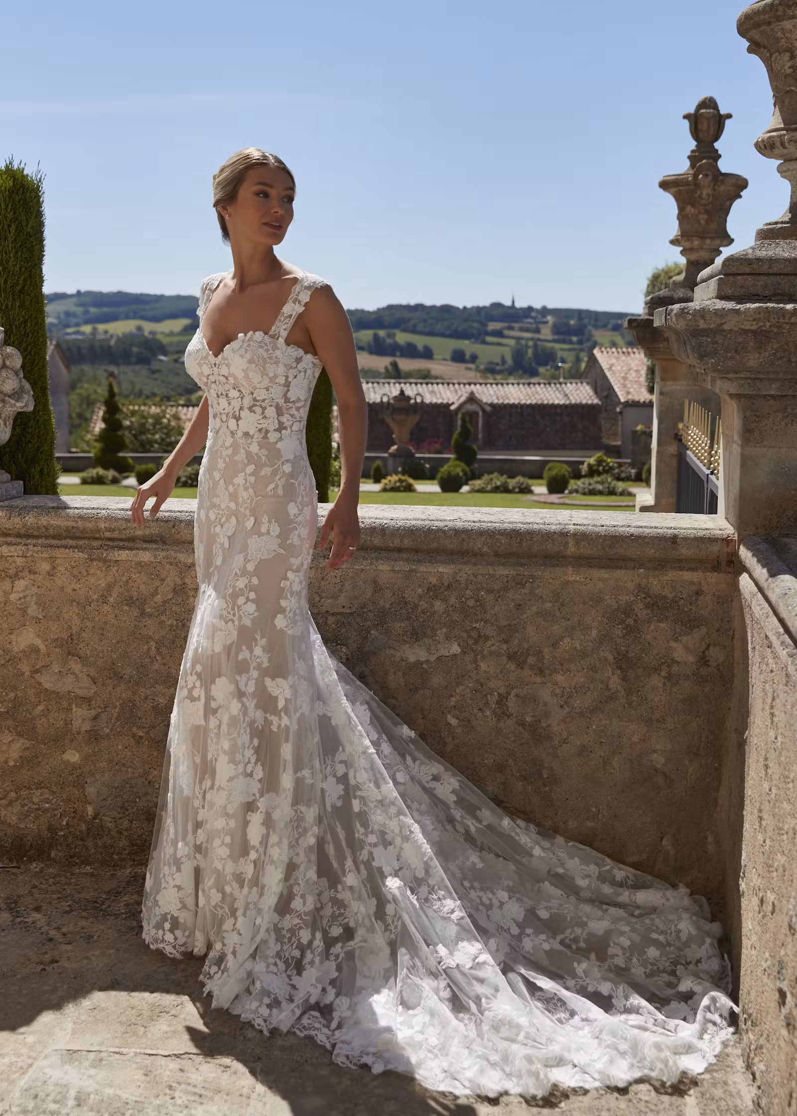 This fit and flare wedding dress is a mesmerizing combination of tulle and intricate lace, creating an enchanting and ethereal look. The sweetheart neckline adds a touch of timeless charm, while the tie back brings a sense of modern allure and versatility. It’s a perfect choice for a bride who desires a captivating and unforgettable appearance on her special day, with a hint of whimsy and delicacy from the tulle and lace.